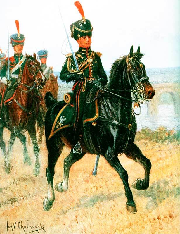 В первое время (1808-1810 годы) обмундирование офицерского состава было уланского типа, однако о нем известно довольно мало.
