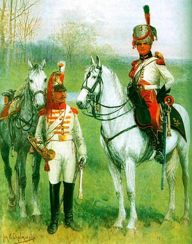 Оружием офицерам служили пара французских пистолетов любых моделей в ольстрах и сабля легкой кавалерии с золочеными эфесом и темляком в стальных ножнах.