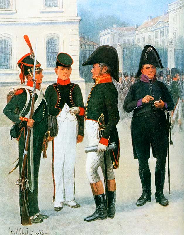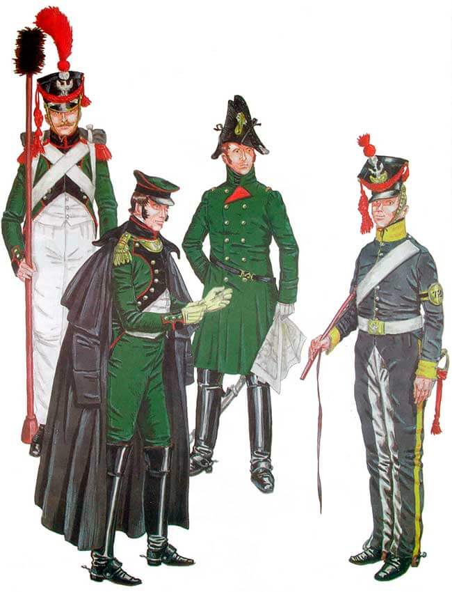 После модификации обмундирования в пешей артиллерии для инженеров ввели в 1811 году польские мундиры-куртки вышеописанных цветов с темно-зелеными и белыми брюками.