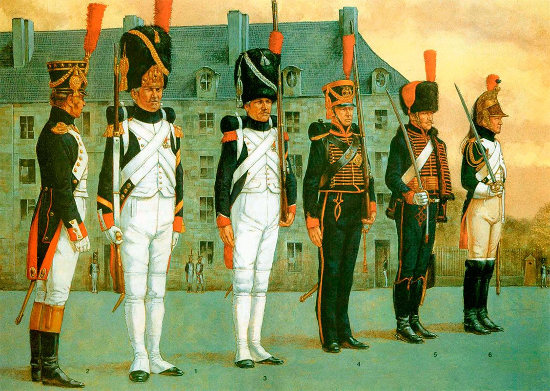 Пешими и конными гренадерами были бывшие гвардейцы эпохи Директории, а конными егерями и легкой пехотой — бывшие гиды Бонапарта.