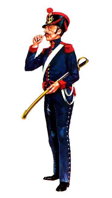Сержантам было разрешено иметь красно-золотой шнур и золотую верхнюю тесьму на кивере.