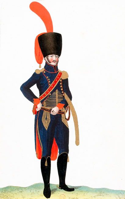 В 1807 году среди офицеров становится популярным гусарский меховой кивер кольбак с красным шлыком, с золотой тесьмой и кисточкой. Он также имел позолоченную подбородочную чешую и гнездо для установки плюмажа или помпона.