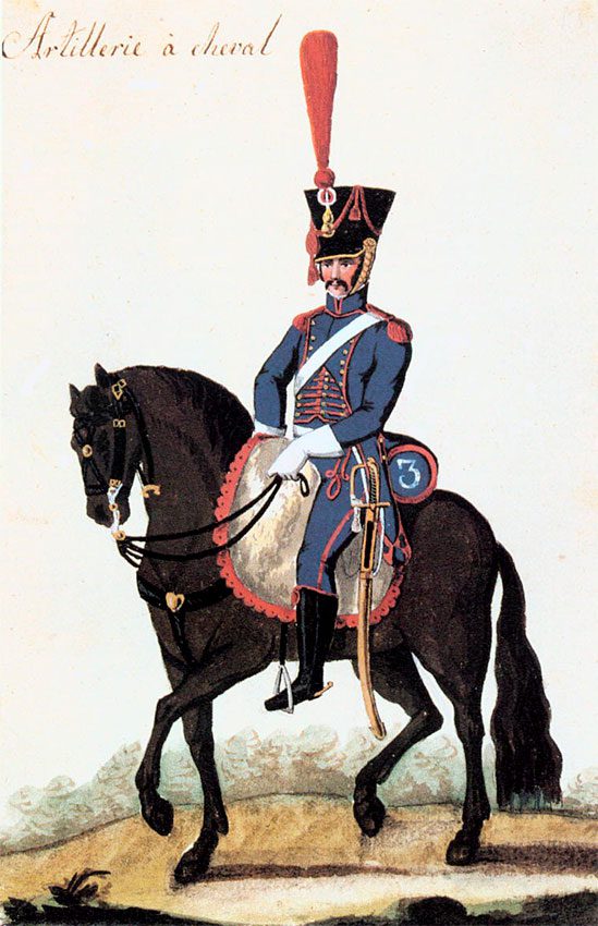 В 1815 году при реставрации количество полков конной артиллерии было сокращено до 4-х из шести рот каждый по 4 офицера и 56 артиллеристов в каждой роте.