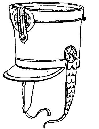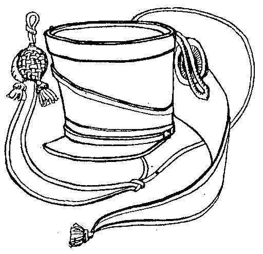 Этот кивер уже без лопасти, но появляется красная тесьма или только по верхнему краю, или по верхнему и нижнему.