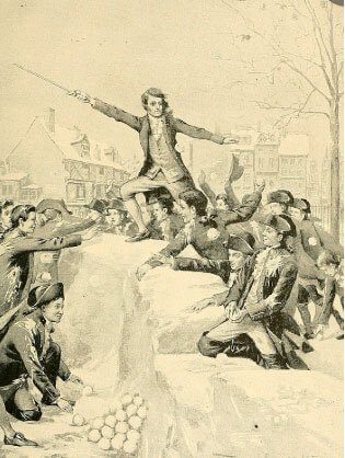 «Во главе осаждающих был Наполеон. Кто был капитаном форта, я не знаю. Его имя до нас не дошло. Но история о битве в снежки дошла. Несколько дней бушевала битва. В каждый час перерыва силы собирались для захватывающего развлечения. Правило заключалось в том, что после захвата форта осаждающие становились его владельцами и, в свою очередь, защищали его от прежних захватчиков, которые теперь составляли атакующую армию, пополненную до необходимого числа некоторыми менее умелыми бойцами преуспевающей армии. Наполеон был в своей стихии. Он был импульсивным лидером, но также и искусным; он никогда не терял голову. Снова и снова, как лидер штурмующего отряда, он руководил атакой; и в нужный момент, под градом снежков, он бросался со своего наблюдательного пункта, возглавлял атакующую армию и, взбираясь на стены с огнём победы в глазах и воодушевляющим криком на устах, вёл своих солдат через валы».