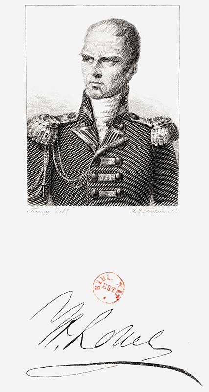 Портрет и подпись Хадсона Лоу (Sir Hudson Lowe), английского генерала, губернатора острова Святой Елены в период нахождения там в изгнании низложенного Наполеона Бонапарта.