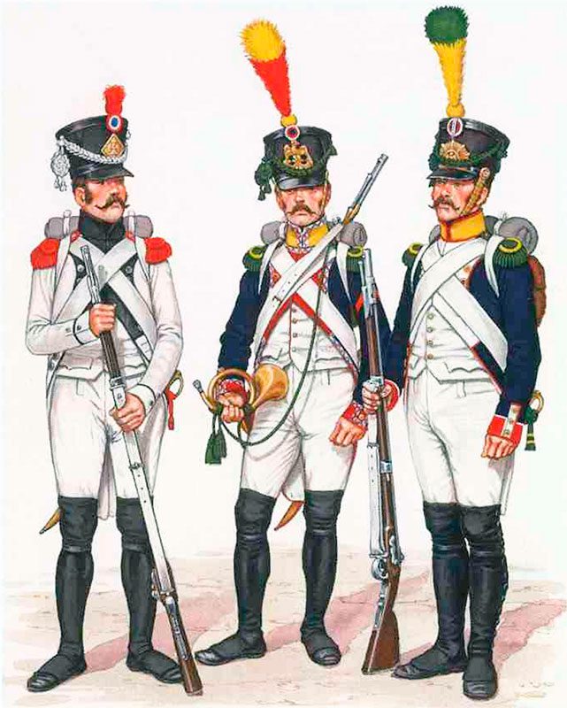 У Наполеона была пехота двух типов: линейная (ligne) и легкая (legere). Легкая пехота, в большей степени, чем линейная, как правило, использовалась для перестрелок, разведки и защиты арьергарда.