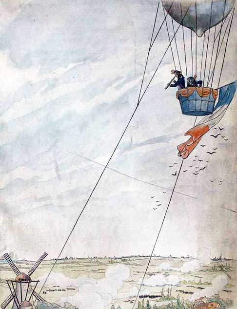 Во французский лагерь стали поступать первые пленные, которых с каж­дым часом становилось все больше. Сол­даты армии принца Кобургского с удивле­нием и недоверием глядели на огромную машину с двумя смельчаками, которая де­ржалась в небе как бы сама по себе (ка­наты были практически незаметны).