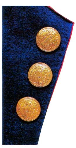 Эти пуговицы были предусмотрены указом от 4 октября 1792 года и изготавливались из цельной латуни или дерева с латунным колпачком.
